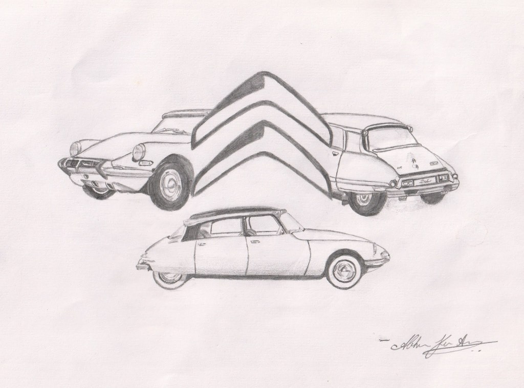 Then we move on to the exterior. The front of the pre facelifted version is so beautiful and soulful. That’s the one in my drawing. I can certainly see links with the likes of the Jaguar E type, the Porsche 911 and the Alfa Romeo Spider. After all, birds of the same feather flock together! Mind you, the DS came much before all of them. When it came, many called the DS, the most beautiful car in the world!